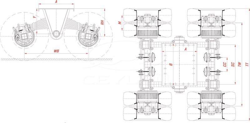 Бугельные оси 2Х14 тонн с 6 -тью шпильками и диском 20"